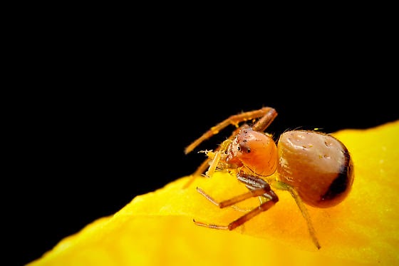 In addition to the typical Crab spider physique, this particular species has a black spot on the tip of the abdomen, as if their 'butts' (abdomen) were dipped in black ink.